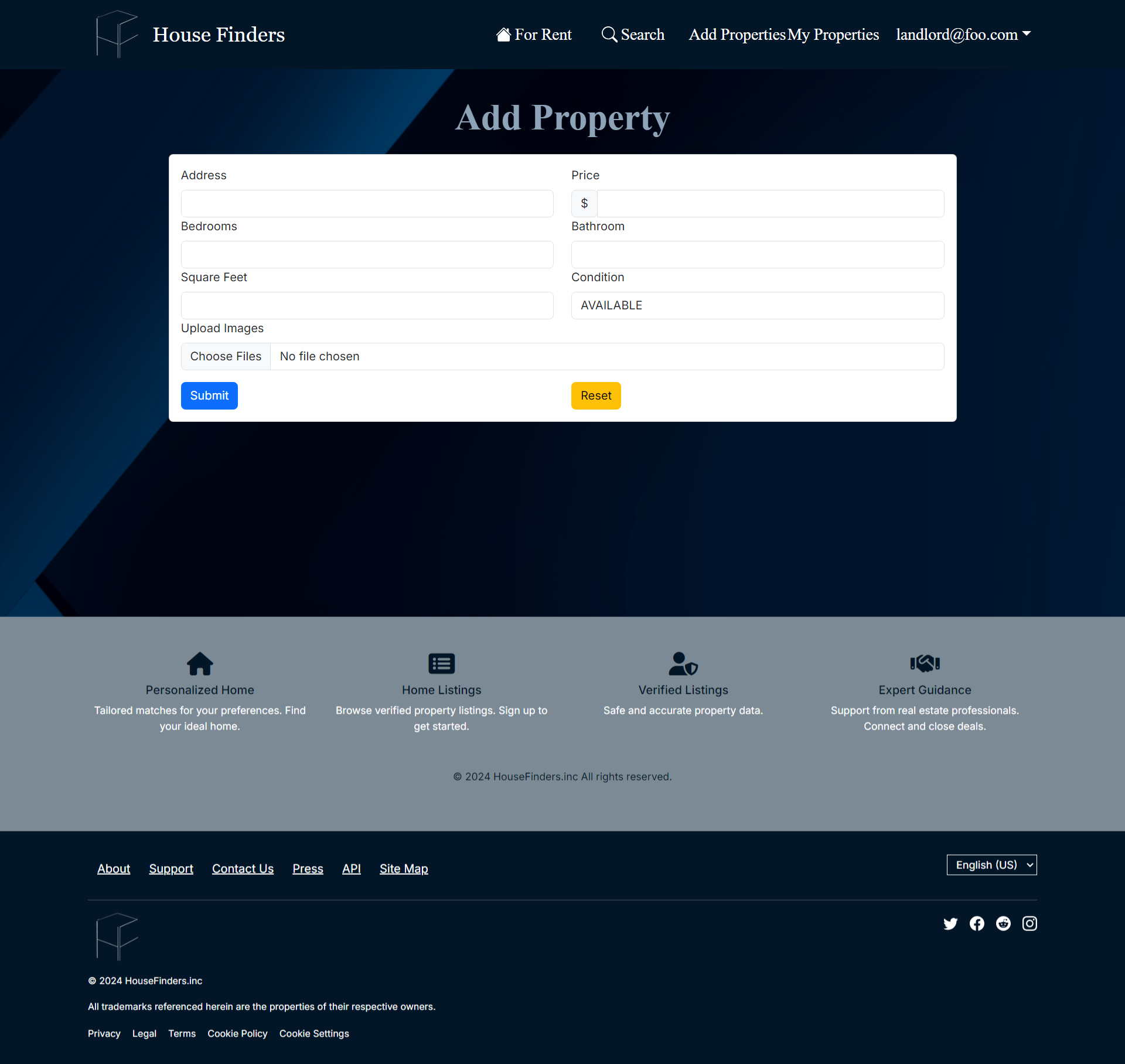 For this project, my main job was to work on the backend of the code along with updating the project site. I worked on creating the classes for all the houses and creating the basic functions that were going to be included on the site. For example, I created the page to add properties to our database. There were a lot of problems with this page because I did not know how to add images to the database. To remedy this, I had to look online for a solution, but they all revolved around uploading an image to some third-party software, having it store it at a certain URL, and receiving the URL that the image is stored at. However, I did not want to use software outside of what we learned in class since I felt that it went beyond the scope of the class, but also because I found another way to do it after consulting my professor. This was to convert my image using base64 so that it would become a string so that I could store that in the database. Then I would use that string to reproduce my image. I was also responsible for deploying our web application using Vercel which was a nightmare in itself. Here’s what the page ended up looking like after my group member added some styling.