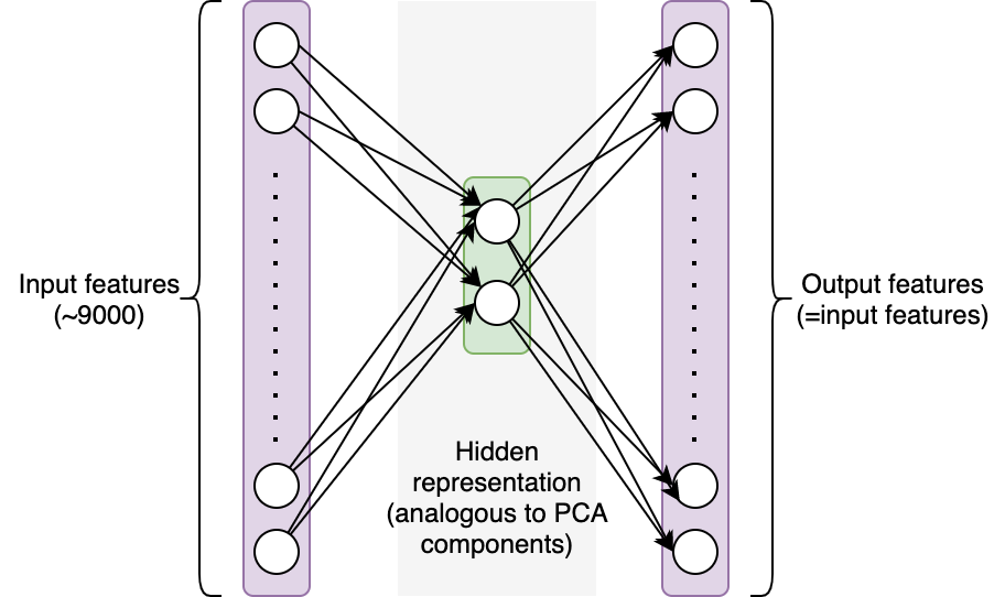 I achieved this result by training a regression neural network with a two-neuron hidden layer in an unsupervised manner. Here’s a diagram of what the neural network looks like:
